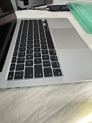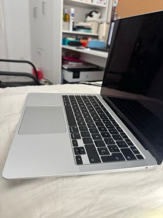 Portátil MacBook Air de 13 pulgadas con chip M1, modelo de 2020. Su diseño es elegante y ligero, ideal para llevar a todas partes. - Pantalla Retina de 13 pulgadas. - Teclado retroiluminado. - Trackpad amplio. - 8 GB El ordenador aunque es de 2020 lo he usado poco, siempre con la funda y un maletín aparte. No tiene desperfectos.