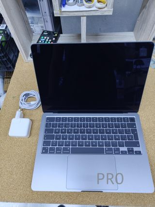 MacBook Air de 2022 en color Gris Espacial. Este portátil combina un diseño elegante con un rendimiento potente. Especificaciones Modelo: MacBook Air (2022) Chip: Apple M2 Memoria RAM: 8 GB Almacenamiento: 256 GB SSD Sistema operativo: macOS Sonoma Pantalla: Retina Color: (añade el color si quieres) Estado Muy buen estado estético y funcional Batería en buen estado Nunca reparado Incluye cargador original Motivo de venta Cambio de equipo. - Pantalla Liquid Retina. - Chip M2. - 8 GB de memoria unificada. - 256 GB de almacenamiento SSD.