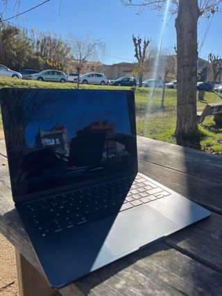 Portátil MacBook Air con chip M2 en acabado gris espacial. Muy poco uso, como segundo ordenador, siempre con protector. - 15" Pantalla como nueva - 8gb de ram - 256gb SSD - Cargador y cable originales - Sin caja.