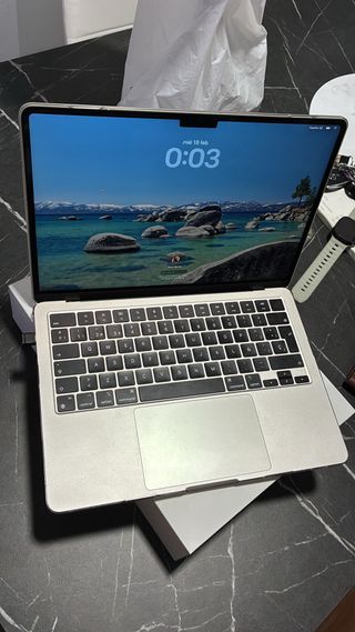 MacBook Air M2 2022 - 16GB RAM / 256GB SSD Pantalla 13,6", funciona perfecto, batería en perfecto estado al 99% vida Incluye cargador y caja original. Pequeña marca estética en una esquina (no afecta al uso). Precio: 800 € negociables.
