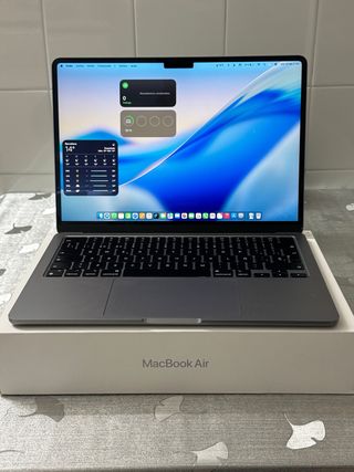MacBook Air con chip M2, 16GB de memoria RAM y 256GB de almacenamiento comprado el 20 de Mayo de 2025 en el Corte Inglés. Bateria al 100% original y se envia con su caja y cargador originales. Vendo porque necesito un portatil gaming. Se envia con ticket de compra para tener la garantia de 3 años de el Corte Inglés. Actualizo 19/02: presenta leves marcas de uso en el teclado. El funcionamiento es perfecto. Incluyo funda antigolpes tomtoc valorada en 25€. Precio no negociable. Hago envios con wallapop.