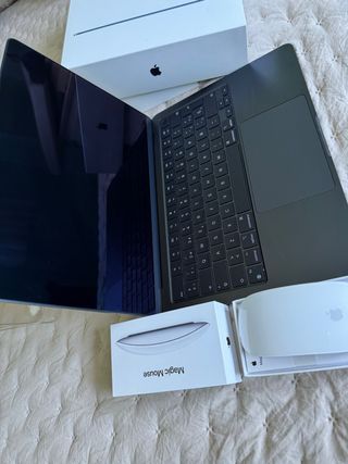 Vendo MacBook Air nuevo (como mucho tendrá 3 horas de uso). En una de las fotos se puede observar que la batería esta nueva al 100%. Lo vendo con funda transparente de Apple valorado en 100€ y con el ratón blanco de Apple. También incluyo un adaptador de USB-C a USB de apple y la bolsa negra para transportarlo. Color blanco estrella. Lo vendo porque lo compré a capricho y no lo uso nunca. - Modelo: MacBook Air 13" - Chip: Apple M2 - RAM: 16GB - Almacenamiento: 512 GB - macOs: Sequoia 15.5