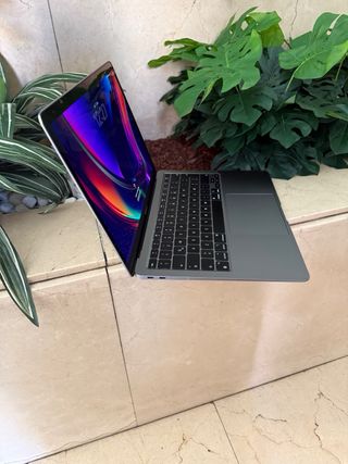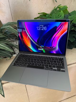 Portátil MacBook Air de Apple en color gris y plateado. Un equipo ligero y potente para el día a día. - Diseño elegante y moderno. - Acabado en aluminio. - 8 gb de ram - 256 gb almacenamiento Tiene un pequeño roce en una esquina nada significativo ,muy bien cuidado
