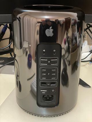 Apple Mac Pro 6,1 edición del 2013 con: • Procesador Intel Xeon E5 3,7 GHz. • Dos GPU AMD FirePro D300 de 4GB VRAM GDDR5. • 4 módulos de 16GB de RAM que hacen un 64gb ECC de memoria RAM. • SDD 2 TB Una máquina con prestaciones profesionales # IPad Apple Iphone MacBook Air Pro