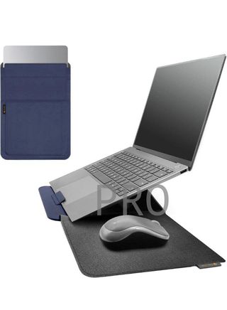 NOVOO RT14 Carcasa de Ordenador portátil 4 en 1, Carcasa de Cuero Impermeable, Soporte de Ordenador portátil, Ranura de Tarjeta, Almohadilla para ratón, Compatible con MacBook Air/Pro 14"- Azul