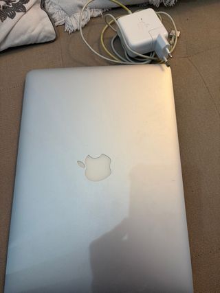 Portátil Apple en color plata. - Diseño elegante y moderno. - Carcasa de aluminio Modelo viejo y sin cargador, por eso su precio.