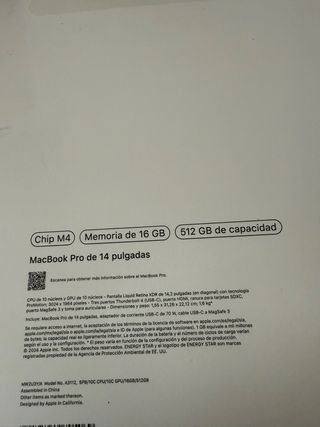MacBook Pro m4 pro 14 24GB 1TB 14c20g SIN ABRIR