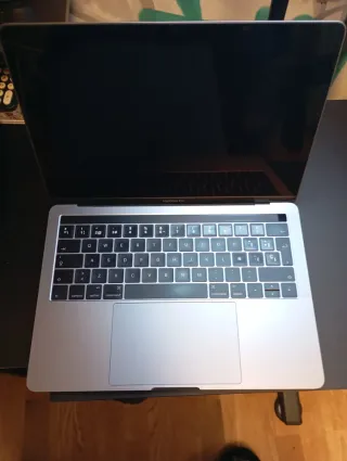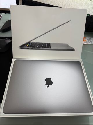 MacBook Pro en color gris espacial, con procesador i7 2.3GHz, 32GB de RAM y 2TB de almacenamiento. - Pantalla Retina 13" - Teclado retroiluminado. - Trackpad Force Touch. - Batería con 52 ciclos. Buen estado - Teclado internacional. Lo entrego con pegatinas para conversión al castellano - Cargador y cable de carga ORIGINAL - Carcasa de plástico protectora - Funda de transporte