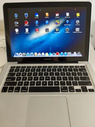 MacBook Pro de 2012 en color plata. - Diseño elegante y compacto - SSD de 128GB - 16GB de RAM El teclado y el adaptador de corriente son ingleses por lo que entrego un adaptador de corriente. La batería dura unas dos horas lo cual es lo normal teniendo en cuenta que nunca se ha cambiado. Los antideslizantes posteriores se cambiaron por otros al despegarse los originales. Se entrega con todo lo que se muestra en la última imagen y con la última versión del sistema operativo compatible instalada. Se puede preguntar cualquier cosa.
