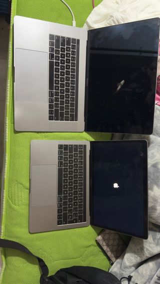 Dos ordenadores portátiles MacBook Pro de Apple, uno de 15 pulgadas y otro de 13 pulgadas. Se encienden las luces pero necesitan formatear. Los dos por 360€. (Se venden sin cargador).