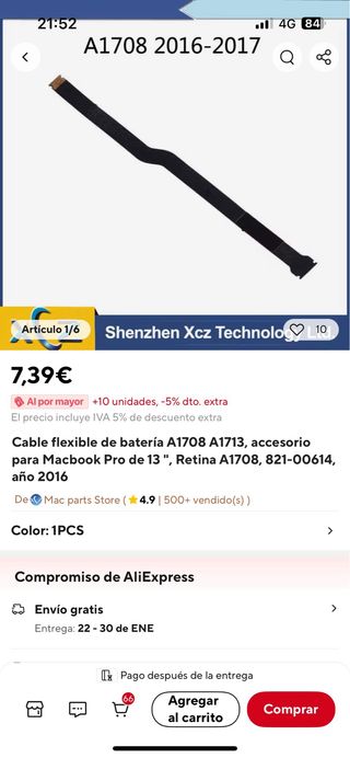 Vendo Flex de bateria para macbook pro de 13 pulgadas 13”. Estan nuevos sin uso. Tengo 4. Si te llevas los 4 hago precio. Adjunto foto de precio de AliExpress. Para macbook retina. Modelos A1708 y A1713 y año 2016