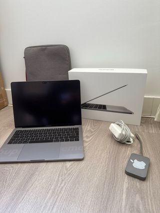 MacBook Pro de 13 pulgadas del año 2017 de 128gb. Entrego con su cargador, caja y regalo una funda. El portatil esta como nuevo, ni un arañazo. Bateria como nueva, 170 ciclos de carga. - Modelo: A1708 - Procesador: 2.3 GHz Intel Core i5 - Memoria RAM: 8 GB 2133 MHz LPDDR3 - Almacenamiento: 128 GB SSD - Gráficos: Intel Iris Plus Graphics 640 - Pantalla Retina - Teclado retroiluminado