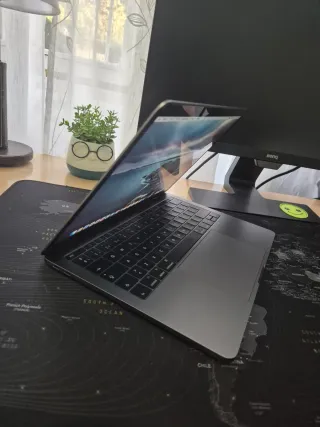 MacBook Pro de 13 pulgadas del año 2017 con la pantalla defectuosa. - 4 entradas mas info en última foto subida Precio negociable MacBook funciona perfectamente con monitor externo. Perfecto para quien trabaja en casa. El problema que tiene se llama Flexgate, es básicamente un cable roto que conecta la pantalla con el ordenador. Al abrir el portátil del todo, se apaga la pantalla porque pierde el contacto. Salud de batería “reparación recomendada” , dura unas horas pero mejor dejarlo enchufado ya que se puede usar prácticamente solo en casa con monitor externo.