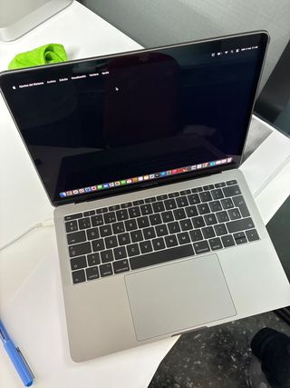 LEER! MacBook Pro 13” (2017) – Teclado británico, perfecto para usar como sobremesa o para piezas ⚠️ Detalles: • La tecla espacio no funciona. • La batería es nueva, pero por posible mala instalación el portátil no la reconoce y solo funciona conectado a la corriente. • Ideal para usar con teclado externo o aprovechar piezas. 💻 Especificaciones técnicas: • Procesador: 2.3 GHz Dual-Core Intel Core i5 • Gráficos: Intel Iris Plus Graphics 640, 1536 MB • Memoria RAM: 8 GB 2133 MHz LPDDR3 El resto del equipo (pantalla, trackpad, altavoces y puertos) funciona perfectamente