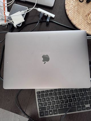 Apple MacBook Pro 15” (2018) 256 GB SSD – Intel Core i7 Vendo MacBook Pro de 15 pulgadas, año 2018, con procesador Intel Core i7. El portátil funciona perfectamente y está en muy buen estado general. Detalles a tener en cuenta: • En la tapa hay pequeñas marcas de antiguas pegatinas (solo estéticas). • La tecla “C” a veces se queda ligeramente pegada, pero funciona. • El trackpad funciona perfectamente, sin problemas. Incluye cable y adaptador de corriente originales. Se regala funda de transporte. Ideal para trabajo, estudios o uso profesional. Listo para usar.