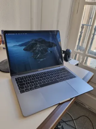 MacBook Pro de 13 pulgadas del año 2018. Incluye su caja original y cargador. - Modelo: MacBook Pro 13 2018 - Procesador Intel Core i7 de 4 núcleos, 2,7GHz, con TouchBar - RAM 16GB - SSD 512 GB - Pantalla Retina 13,3" - 4 puertos Thunderbolt 3. - Teclado retroiluminado español. - Color: Gris Espacial. - Caja original. - Funciona bien, con algunas señales de uso, en especial en el cargador/cable USB-C y un despintado en la tecla Command.