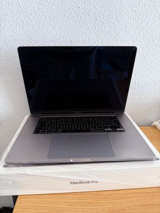 Portátil MacBook Pro de 16 pulgadas, modelo de 2019. Equipo muy cuidado, siempre usado con protector de carcasa, por eso está sin golpes ni marcas. - Procesador Intel Core i7. - 32GB de memoria RAM. - Almacenamiento interno de 512GB. - Batería en buen estado 96 ciclos - MacOS Tahoe 26 - Cargador original