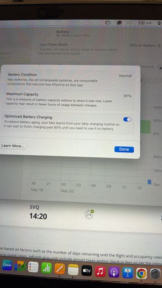 Especificaciones: Chip Apple M1 Pro (8 núcleos: 6 rendimiento + 2 eficiencia) 16 GB RAM, 500 GB SSD Retina XDR 14” (3024 x 1964) macOS actualizado Estado: Muy buen estado general, uso cuidadoso Signos mínimos de uso normal Batería en excelente condición: 89% capacidad máxima, solo 234 ciclos de carga Funcionamiento perfecto Incluye: MacBook Pro Cargador original Apple (sin caja)