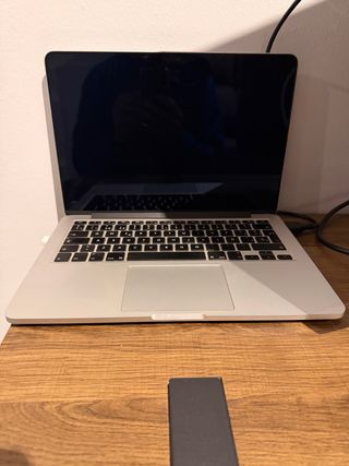 MacBook Pro de 13 pulgadas del 2019 en color gris plata. La pantalla está rota, como se ve en las fotos. - Modelo: MacBook Pro 13" (2019) - En buen estado, salvo la pantalla. Intel Core i5 de 4 núcleos a 1.4 GHz (Turbo Boost hasta 3.9 GHz) ✅ 8 GB de RAM ✅ SSD de 128 GB Incluye funda, carcasa protectora y cargador original de Apple. ⚠️ IMPORTANTE: La pantalla está rota y no es la original de Apple. Se cambió en septiembre de 2024 por una compatible, pero no ha salido buena, por lo que recomiendo cambiarla por una de más calidad. El resto del portátil funciona perfectamente (teclado, batería, altavoces, puertos, etc.).