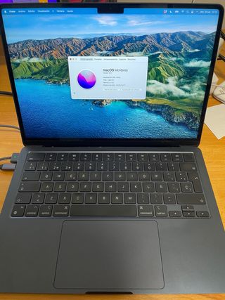 Macbook air M2 2022 Funciona perfectamente. No tiene rayadas ni golpes, pero: - El ordenador no entra en suspensión al bajar la pantalla porque le cambié la pantalla y no pude ponerle el sensor de la anterior. Hay que ponerlo en suspensión manualmente o apagarlo antes de bajar la pantalla. - Y tiene unas ligeras rajitas en el plástico de la parte inferior de la pantalla. Mirar imagen. La pantalla está impecable pero mi hijo al abrirme un dia el ordenador se pasó de energía y salieron estas rajitas en el plastico que está cerca de la unión con el teclado. Lo vendo porque me he pasado al pro. Cargador original , caja original.