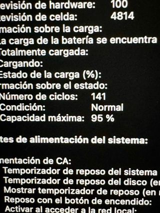 ✅ Se vende MacBook Pro de 15 Pulgadas con bastantes signos de uso. A nivel de funcionamiento, está perfecto. 923 ciclos de carga. (Sustitución recomendada pues dura apenas 30 min-1 hora por lo que debe usarse enchufado). Se le ha instalado MAC OS SEQUOIA. 👉 La pantalla tiene la capa antireflectante destacada, solo se aprecia con la pantalla apagada. 🔧 Se ha sustituido la pasta térmica de procesador y gráfica 📦 Se entrega con cargador 💻 Especificaciones técnicas ⬇️ Modelo 2015-2014 - Procesador: 2,2 GHz Intel Core i7 - Memoria RAM: 16GB - Almacenamiento SSD: 1TB - Gráficos: Intel Iris 1536MB 📞 Para más información, contactar. Precio NO negociable. NO me interesan cambios. NO realizo envíos.