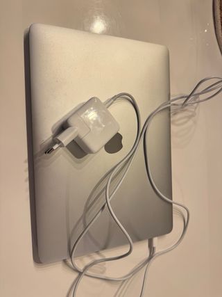 Mi mac personal de 2012. Lo tenia guardado desde hace años. Lleva un ssd de 500gb pero no lo reconoce. El mac funciona bien, se puede reinstalar el sistema mediante recovery pero habria que mirar si el problema es del cable sata o del disco ssd. Cargador funcionando pero ha visto dias mejores...