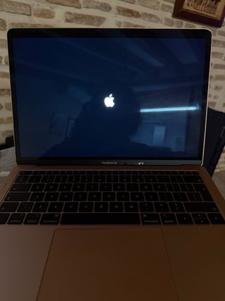 MacBook en color dorado, siempre protegido con funda. No es un equipo reacondicionado. - 8GB de memoria RAM. - 128GB de almacenamiento.