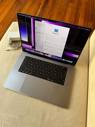 Precio original 2979€. No es reacondicionado. Vendo mi MacBook Pro de 16 pulgadas del año 2021. Funciona a la perfección y ha sido cuidado al máximo, siempre en casa. Ni un solo golpe, ni una sola caída. Lo vendo por adquisición de modelo más reciente. Modelo: MacBook Pro (16 pulgadas, 2021) Color: Gris Plata (Silver) Chip: Apple M1 Pro Memoria Unificada (RAM): 16 GB Almacenamiento: 1 TB SSD (Modelo: Apple SSD AP1024R). Pantalla Liquid Retina XDR de 16.2 pulgadas con tecnología ProMotion (hasta 120Hz). Cargador original (Adaptador de corriente y cable MagSafe 3). Teclado Español Número de serie VM6CXMFD2L
