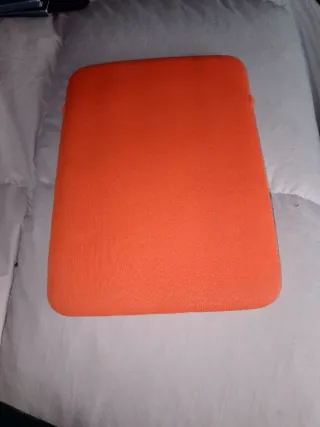 Funda protectora de color naranja brillante, ideal para dispositivos electrónicos. - Material suave y acolchado. - Diseño elegante y funcional. - Cierre seguro para proteger tu equipo.