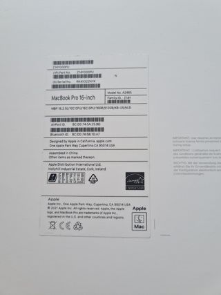MacBook Pro Retina, 16-inch, 2019 - Procesador: Intel Core i9 2,3GHz 8-Core - Memory: 16GB 2667MHz DDR4 - Storage: 1TB - Graphics: AMD Radeon Pro 5500M 4GB + Intel UHD 630 1536MB Battery: (Battery replaced!) - Full Charge Capacity: 8076mAh - Cycle Count: 39 - Battery Condition: Normal Type-C charging included