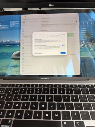 MacBook Air en color plata. - Modo de bajo consumo activado. - Salud de la batería en estado normal. - En la foto se ven caracteristicas