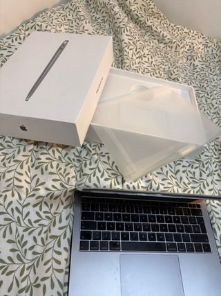 Portátil MacBook Pro 13” de 2017 en su caja original. - Modelo: MacBook Pro - Año: 2017 - Color: Gris Espacial - Incluye funda protectora - Incluye cargador original Especificaciones -Procesador 2,3 GHZ Intel Core i5 de doble núcleo. -Gráficos Intel Iris Plus Graphics 640 1536 MB -Memoria 8 GB 2133 MHz LPDDR3 -Número de serie FVFYL9Z4HV22 -Sistema Operativo macOS Ventura 13.7.2