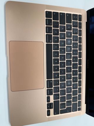Portátil MacBook Air de 13 pulgadas, modelo de 2019, en un elegante acabado dorado/rosa. - Pantalla Retina. - Teclado retroiluminado. Se ha utlizado muy poco y se encuentra en perfecto estado salvo por un pequeño golpecito en una esquina.