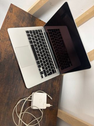 Portátil MacBook Pro de 15 pulgadas, modelo Retina de 2015. Diseño elegante y potente. - Pantalla Retina de alta resolución. - Procesador rápido para multitarea. - Amplia capacidad de almacenamiento. - Teclado retroiluminado.