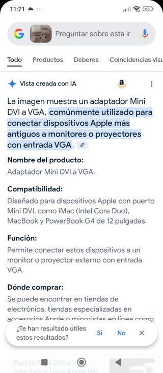 Adaptador Mini DVI a VGA para conectar dispositivos Apple antiguos a monitores o proyectores con entrada VGA. Está en buen estado. - Permite conectar dispositivos Apple con puerto Mini DVI a un monitor o proyector externo. - Compatible con MacBook y iMac (Intel Core Duo). - Incluye un adaptador.