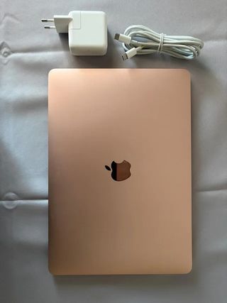 MacBook Air 13" (2020) Chip M1 - Color ORO. Condiciones: funcionando perfectamente, sin signos de desgaste. Se vende por cambio a modelo superior. Especificaciones: Chip: Apple M1, Memoria: 256 GB SSD, RAM: 8 GB, Estado de la batería: 86% de capacidad máxima (excelentes prestaciones). Accesorios incluidos: Cargador original USB-C, Formateado, desconectado de iCloud y listo para usar. Intercambio en mano en la zona de Torrevieja. 🔹 Características principales: • Procesador Apple M1 (rápido, silencioso y súper eficiente) • 8 GB de RAM para trabajar en multitarea sin ralentizaciones • 256 GB SSD ultrarrápido • Pantalla Retina 13