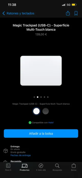 Trackpad Magic de Apple con conexión USB-C. Superficie Multi-Touch. - Color blanco. - Compatible con Halo.