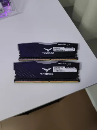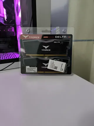 Kit de memoria RAM DDR4 de 16GB (2x8GB) en color negro. - Velocidad de 3600MHz CL 18 PC4-28800. - Marca T-FORCE DELTA RGB. - Ideal para gaming y alto rendimiento.
