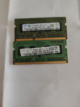 Dos módulos de memoria RAM Samsung de 2GB cada uno, usados pero en buen estado. Son ideales para actualizar tu portátil. - 2 módulos de RAM. - 2GB cada módulo. - Marca Samsung. Estaban en un portátil Packard Bell Easy note