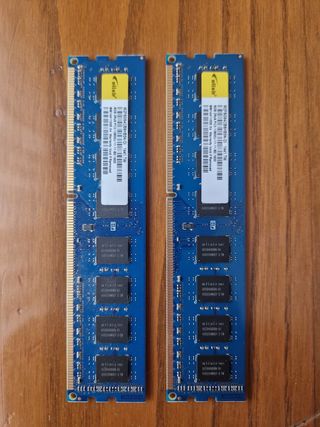 Dos módulos de memoria RAM DDR3 de 2GB cada uno.
