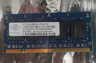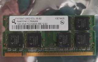 2 módulos memoria RAM SODIMM DDR2 para portátil, a 667 mhz se frecuencia, de 512 mb cada uno, (1gb en total). Envíos rápidos con walapop envíos.