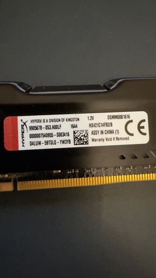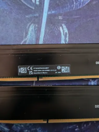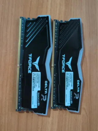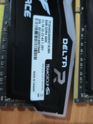 2 memorias RAM de 8GB y 3600MHz, buen estado, se sustituyeron porque compré 128GB de RAM hace un año. 2 RAM with 8GB each and 3600MHz, good condition, they were swapped once I bought 128GB over a year ago