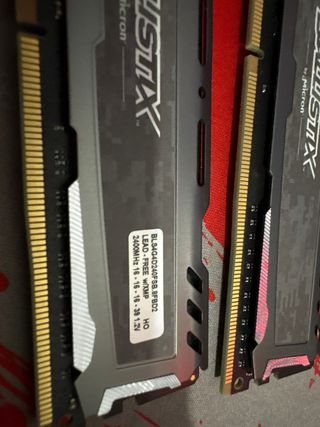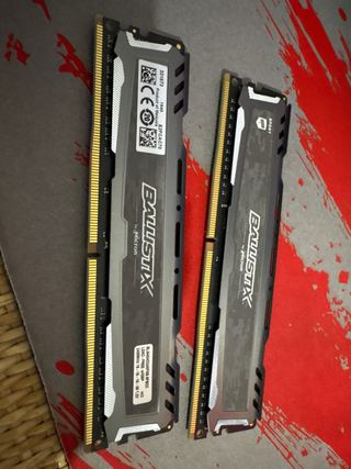 Vendo un pack de dos módulos de memoria RAM Crucial Ballistix. - Capacidad: 8GB por módulo. - Tipo: DDR4. - Velocidad: 3200MHz. No conservo la caja original.