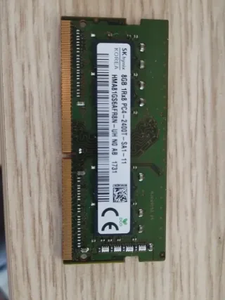 2 módulos de memoria RAM SODIMM (para portátil) DDR4 de 2600 MHz, 16GB en total. - Marca: SK hynix - Tipo: DDR4 SODIMM - Velocidad: 2600 MHz - 8 Gigas cada módulo Son los que venían con mi portátil HP Omen, los he cambiado por otros de capacidad superior. Precio negociable.