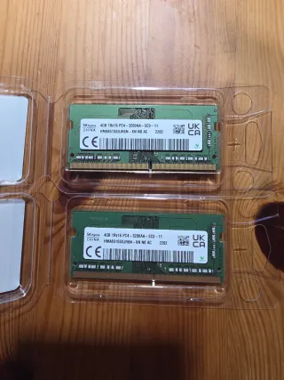 Pack de dos módulos de memoria RAM DDR4 de 4GB cada uno, para portátiles o sistemas compactos. - Capacidad total: 8GB (2 x 4GB). - Velocidad: 3200MHz. - Tipo: DDR4 SODIMM. - Fabricante: SK Hynix.