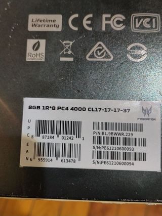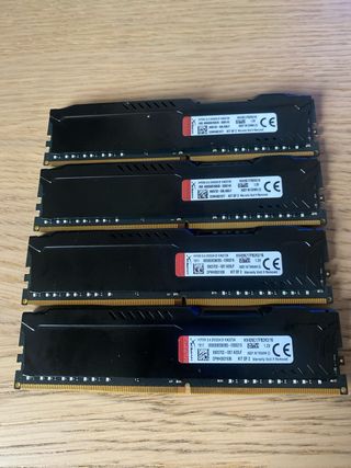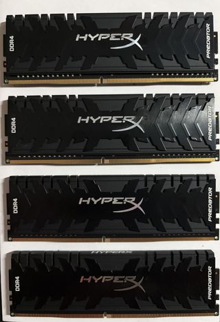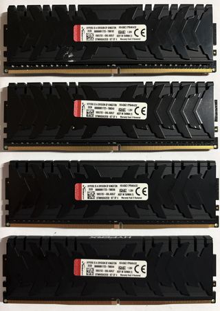 Kit de 4 módulos de memoria RAM DDR4 HyperX Predator. - Capacidad total de 32GB (4x8GB). - Velocidad de 3600MHz. - Latencia CL17. - DDR4 Las compré en amazon en noviembre de 2020 (tengo la factura si fuera necesario)
