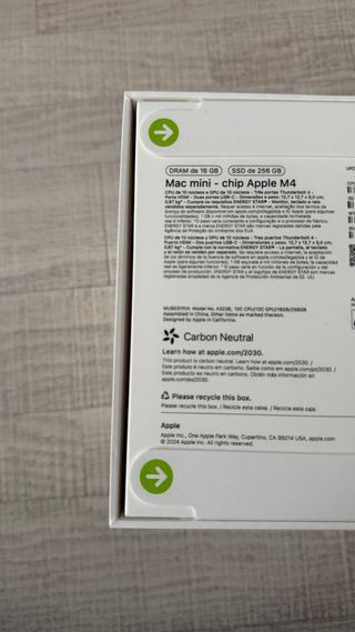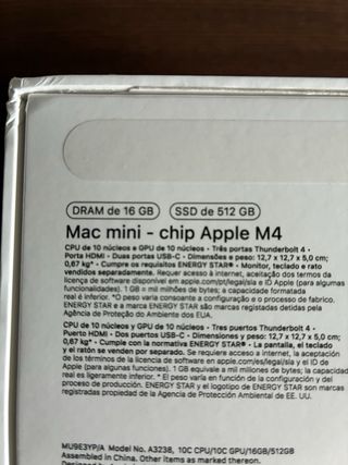 Ordenador Apple Mac mini con procesador M4. NUEVO PRECINTADO SIN ABRIR - 16 GB de memoria RAM. - 256 GB de almacenamiento SSD.