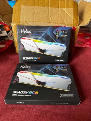 PRIMERA MANO y Envío al día siguiente de la compra. Vendo sin usar ni abrir el Kit de memoria RAM Netac Shadow RGB DDR5 de 64GB (4 módulos de 16GB cada uno) con una velocidad de 4800MHz y latencia C40. Diseñadas para gaming y con iluminación RGB. Estas memorias suelen costar más de 1.000€, aprovecha el precio actual antes de que sigan subiendo ! - Capacidad total: 64GB (4 x 16GB) - Tipo de memoria: DDR5 - Velocidad: 4800MHz - Latencia: C40 - Iluminación: RGB - Compatibilidad: Aura Sync, MSI Mystic Light, Gigabyte RGB Fusion, Polychrome Sync tags: memoria ram barata, memoria ram ddr5, ram a buen precio, memoria ram para el pc