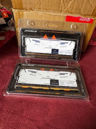 PRIMERA MANO y Envío al día siguiente de la compra. Vendo sin usar ni abrir el Timetec Pinnacle Konduit DDR4-3600 CL18 64GB (2x32GB). No esperes a que siga subiendo de precio las memorias ram. Conjunto de 2 módulos de memoria RAM DDR4 de 32 GB cada uno, para un total de 64GB. Diseñados para gaming. - Modelo: Konduit - Capacidad total: 64 GB (2 x 32 GB) - Tipo de memoria: DDR4 - Velocidad: 3600 MHz - Latencia: CL18 - Voltaje: 1.35V tags: memoria ram, memoria ram barata, 64gb ddr4, memoria ram a buen precio, españa, palma, mallorca
