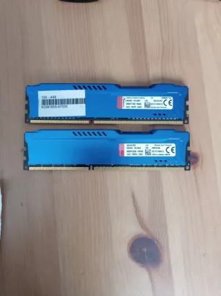 Se venden dos módulos de memoria RAM Kingston de 8GB cada uno. - Capacidad total: 16GB (2x 8GB). - Color azul con disipador. - Ideal para mejorar el rendimiento de tu PC.